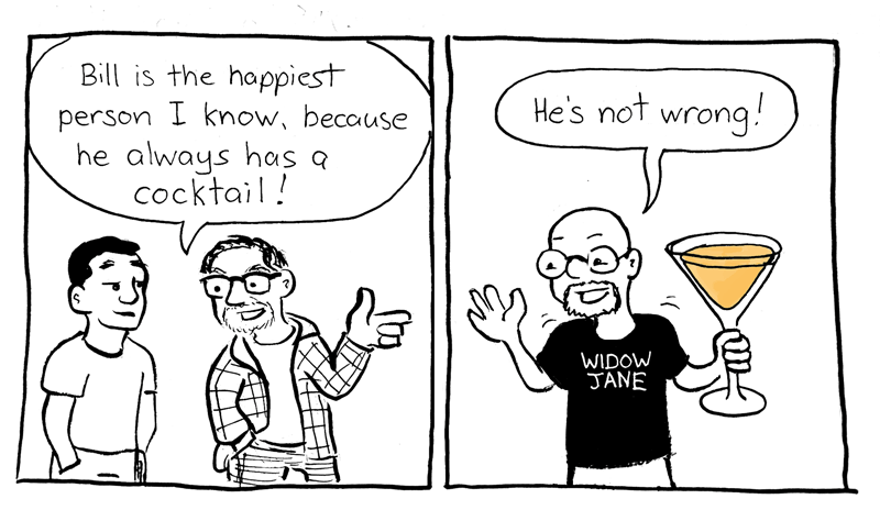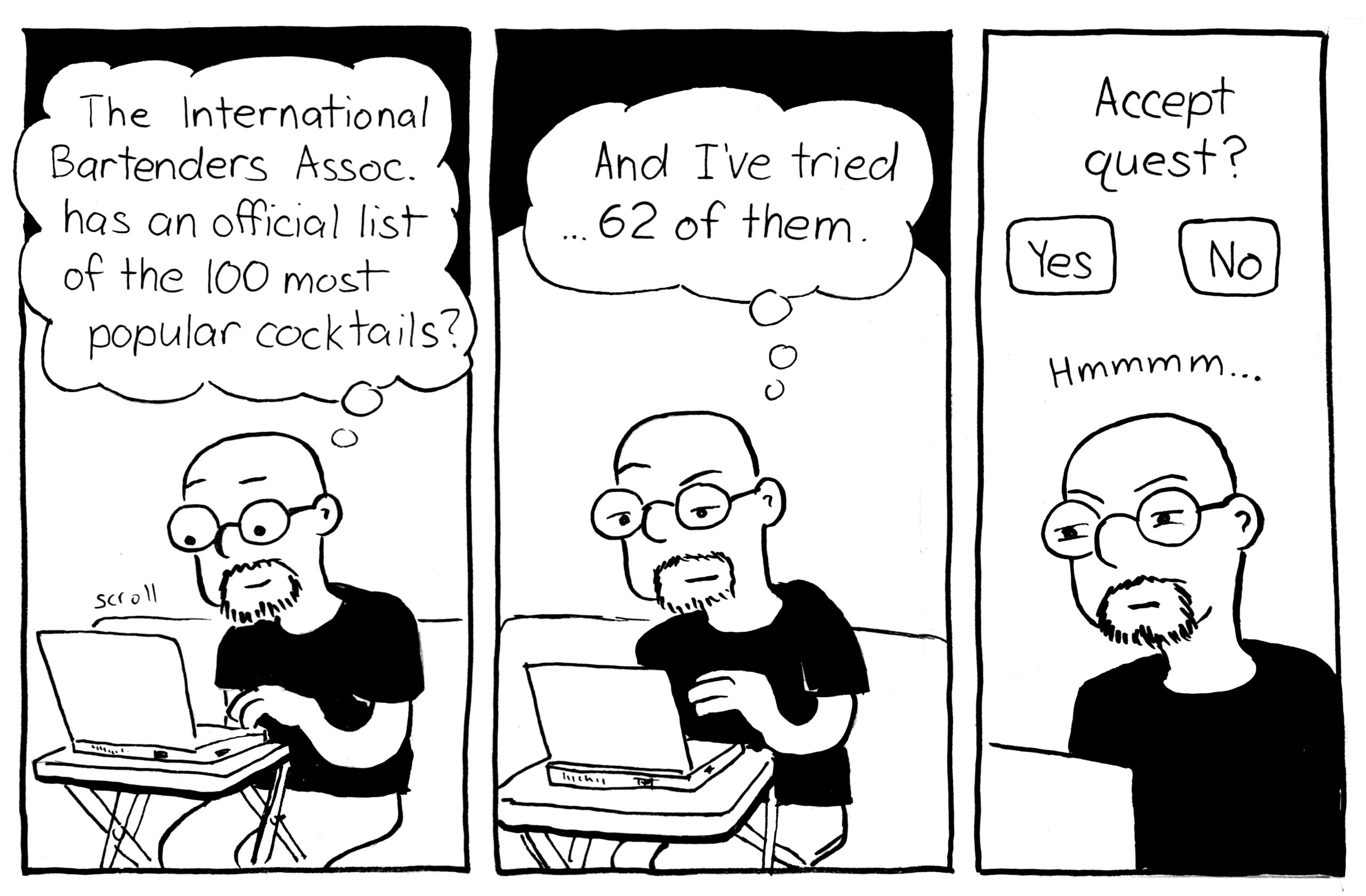If you are looking for my cocktail comics and bar reviews, you can read them at: www.BarScrawl.net!